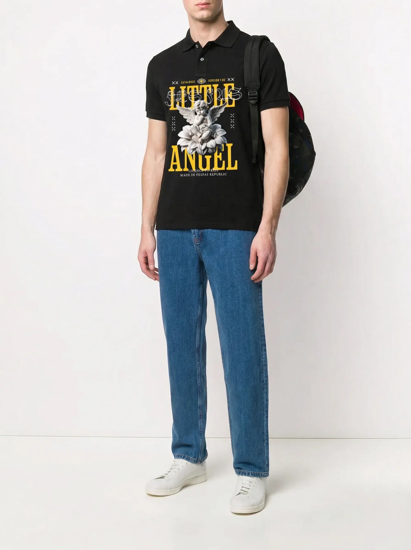 FesFas Angel-print Polo Shirt | Men | Black